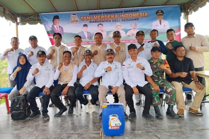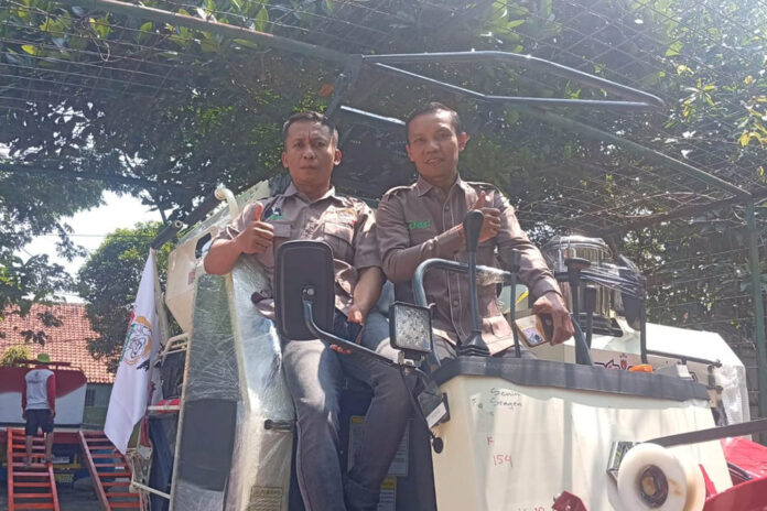 TANIMERDEKA – DPD Tani Merdeka Indonesia Kabupaten Sragen ikut menyerahkan bantuan alat dan mesin pertanian (alsintan) berupa combine harvester kepada kelompok tani binaan.