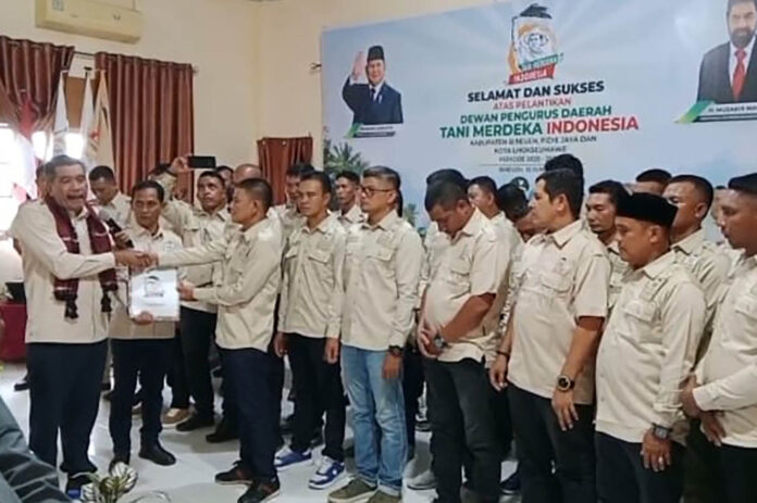 TANI MERDEKA – Ketua Dewan Pimpinan Wilayah (DPW) Tani Merdeka Indonesia Provinsi Aceh, Cut Muhammad, melantik pengurus Dewan Pimpinan Daerah (DPD) Tani Merdeka Indonesia Kabupaten Bireuen, Kabupaten Pidie Jaya, dan Kota Lhokseumawe.
